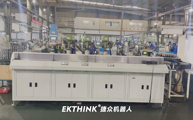 全自動鉆孔攻絲機,機械手自動倒角機,應用洗衣機脫水軸鉆孔、攻絲、倒角等整條自動線。通過該自動線,完成自動上下料,自動加工換料,自動完成鉆孔、攻絲、倒角等加工過程。11