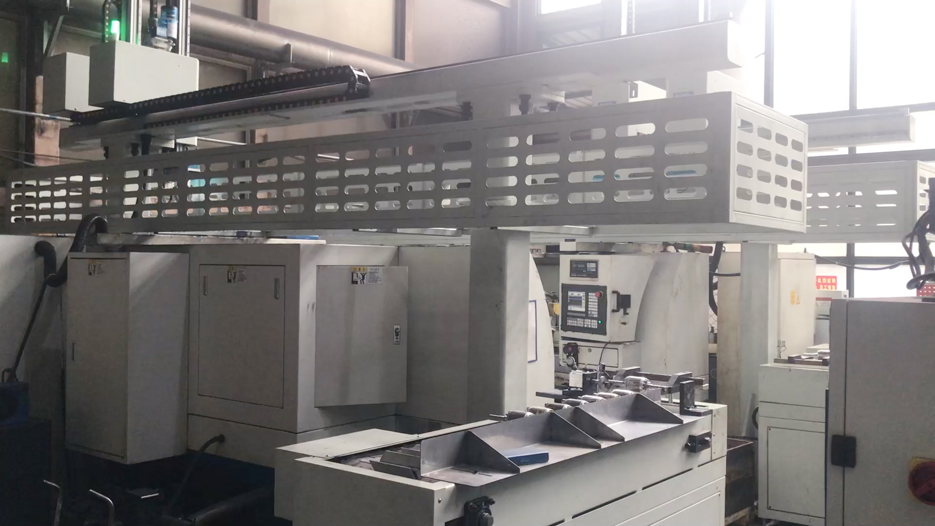視頻簡介:桁架機械手與數控外圓磨床配合使用,用于實現工件在一臺桁架機械手的幫助下,在料架和數控外圓磨床之間自動搬運和定位,請觀看視頻介紹。09